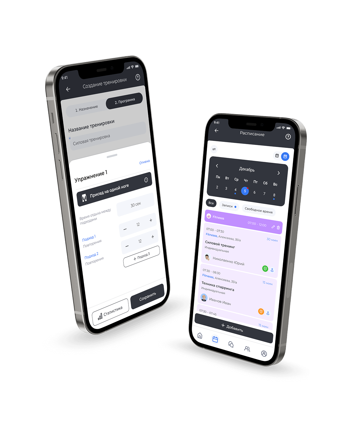 Ведение расписания онлайн / офлайн тренировок, с возможностью записи клиентов через сервис